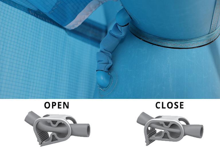 ANOTHER INNOVATION FOR YOUR SAFETY The hose clamp is used to isolate the air pressure in the central strut and leading edge. In the event of leaking bladder, the clamp ensures that some air remains in the wing.